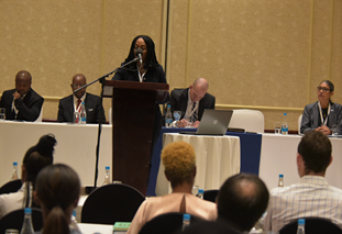 The speakers included Emma Peloetletse, Accountant General of Botswana, Elaina Gonsalves, Deputy Secretary for Financial Policy of Botswana, and Peter Mulroy, Secretary General of FCI.