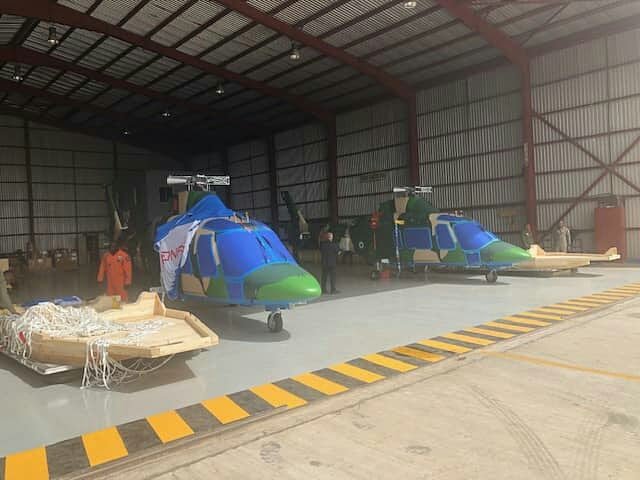The two Agusta 109 attack helicopters being assembled by Nigerian Air Force