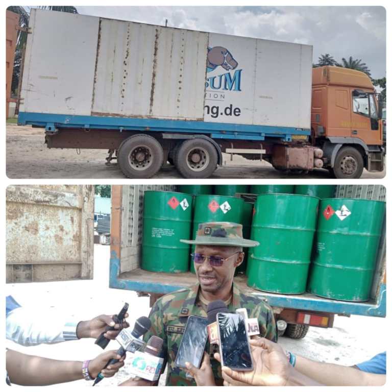 Brig.-Gen. Eddie Effiong, Commander of 6 Division Garrison, Nigeria Army, Port Harcourt, spoke while presenting the seized truck and petroleum product to newsmen in Port Harcourt on Thursday.