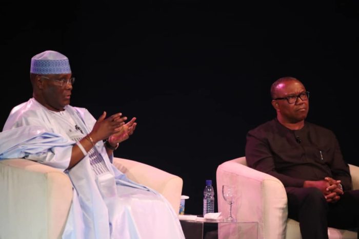 Atiku Abubakar and Peter Obi at The Candidates Forum in Abuja on Wednesday