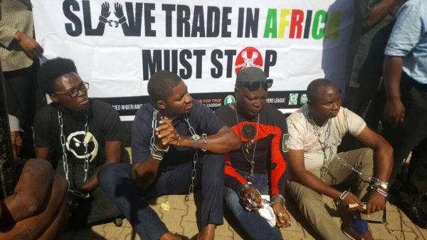 #OurMumuDonDo activists led by Charly Boy held a dramatic protest at the Ministry of Foreign Affairs today, asking the Nigerian government to stop the slavery in...