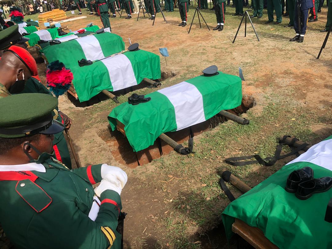 The late Chief of Army Staff, Lieutenant-General Ibrahim Attahiru, and 10 other officers were buried on May 22, 2021, at the National Military Cemetery in Abuja. Sodiq Adelakun/Channels Television.
