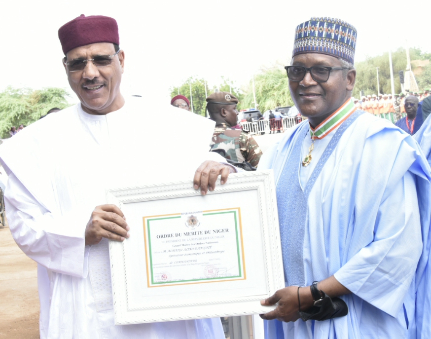 President/Chief Executive of Dangote Industries Limited, Aliko Dangote has been conferred with the Commander of the Order of Merit of Niger award by the President of the Republic of Niger, His Excellency Mohamed Bazoum in Niamey.