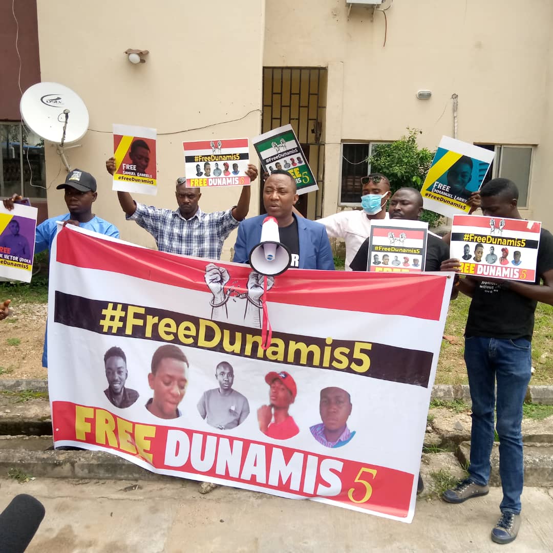 “We call on the lawless entity called Department of State Services to immediately and unconditionally release Emmanuel Larry, Henry Nwodo, Samuel Gabriel, Ben Manasseh and Anene Udoka as protest remains lawful and democratically permitted in Nigeria,” they said.