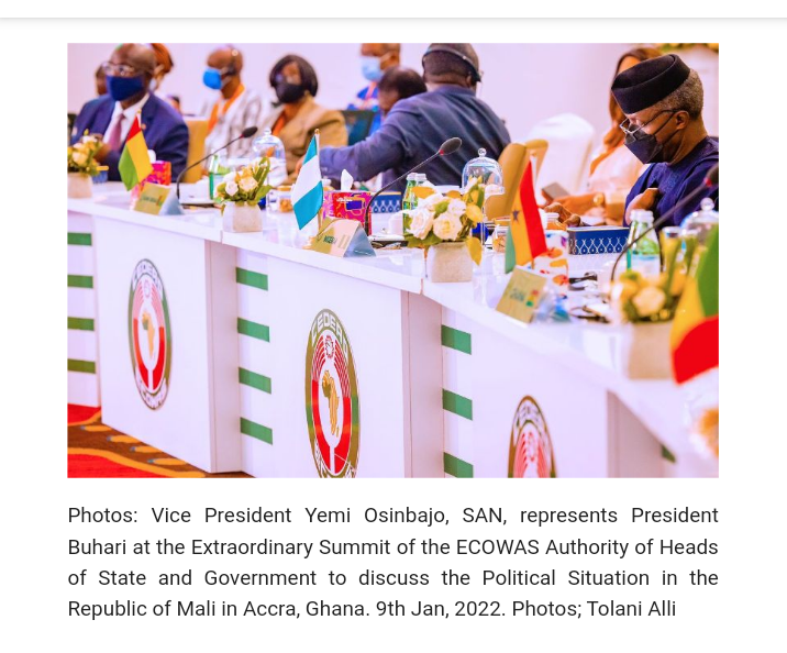 Prof. Osinbajo stated this on Sunday in Accra, Ghana, where he represented President Muhammadu Buhari at an Extraordinary Summit of the ECOWAS Authority of Heads of State and Government to discuss the political situation in the Republic of Mali.