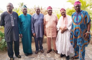 R-L Rilwan Bola Fashina, EKOBA National President; Alhaji Gbolahan Solabi; Engr. Adeniji Raji (Trustees Chairman); Barr. Theo Ola Ayeni; Engr. Olugbenga Olabenjo and Dr. Kola Ibirogba, all members of the EKOBA Board of Trustees after the inauguration.