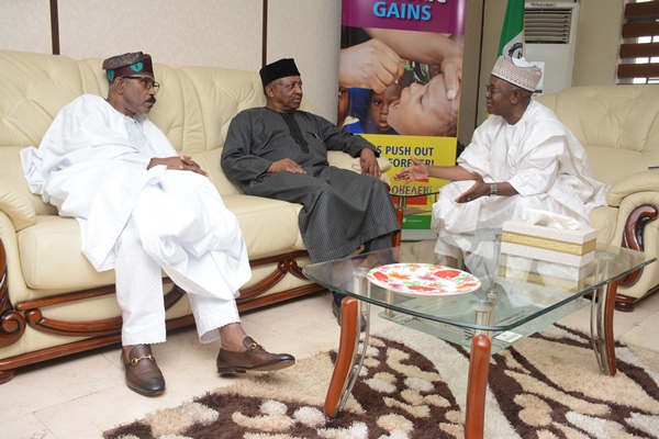 The Permanent Secretary, Health, Mr. Abdulaziz Mashi Abdullahi, in a discussion with the Ministers of Health in the Minister’s office, Abuja