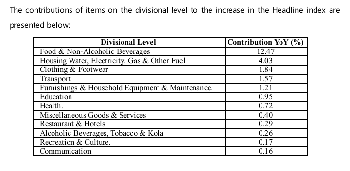 The July headline inflation rate, which was the highest so far recorded in the past years, rose to 24.08% relative to June 2023 headline inflation rate which was 22.79%.