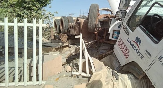 Channels Television gathered that the accident the truck was loaded with about 300 bags of cement and the tricycle conveyed four passengers.