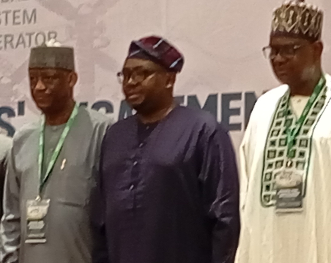 The Minister of power, Adebayo Adelabu (center) flanked by the Managing Director/CEO NISO, Engr. A.B.Mohammed (right) and the Managing Director/CEO TCN, Engr. Abdullaziz Sule (left) at the NISO maiden stakeholders engagement in Abuja.
