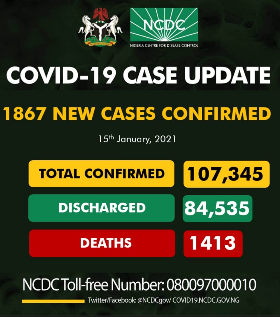 1867 new cases of COVID19 in Nigeria bringing the total cases of officially confirmed Coronavirus in the country to 107,345