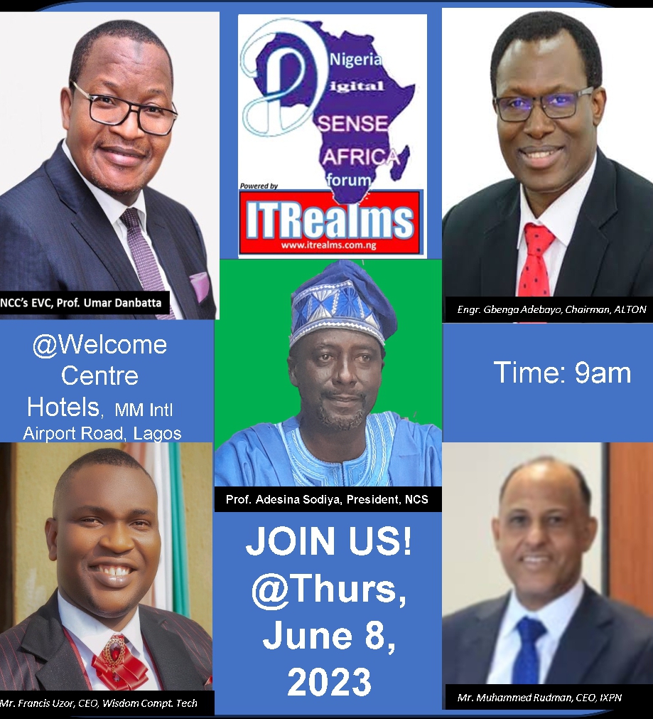 The multiple award-winning Executive Vice Chairman and Chief Executive Officer of the Nigerian Communications Commission (NCC), Prof. Umar Garba Danbatta; the chairman, Association of Licensed Telecommunication Operators of Nigeria (ALTON), Engr. Gbenga Adebayo; Managing Director, Internet Exchange Point of Nigeria (IXPN), Mr. Muhammed Rudman and Chief Executive Officer of Wisdom Computer Technologies, Mr. Francis Uzor would be leading a team of speakers at the 2023 Nigeria DigitalSENSE Africa Forum (NDSF) series on Internet Governance for Development (IG4D) holding this Thursday, June 8, in Lagos.
