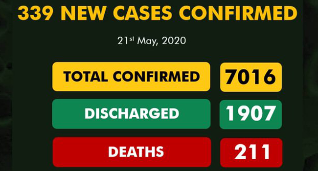 Nigeria reported 339 new cases of the novel coronavirus on Thursday, bringing its total infections to 7,016.