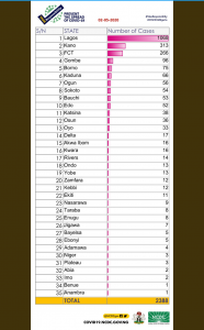 Nigeria has recorded current total of 2,388 cases of Coronavirus as 220 new cases were confirmed Saturday.