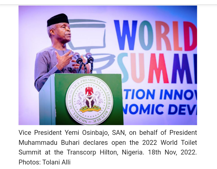 Vice President Yemi Osinbajo, advocated this while declaring open the 2022 World Toilet Summit in Abuja, on behalf of President Muhammadu Buhari.
