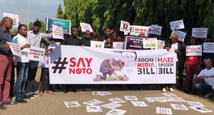 The protest tagged #SayNoToHateSpeechBill took place at the National Assembly gate.