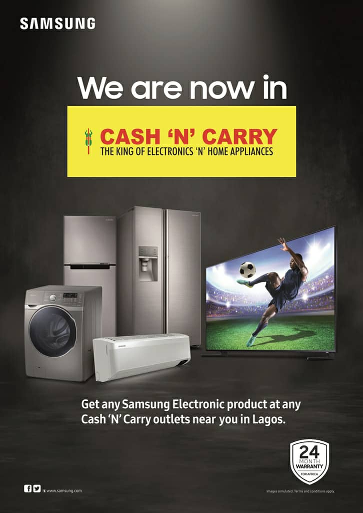 In a bid to ensure the availability of its appliances to consumers , Samsung Electronics West Africa in partnership with Cash ‘N’ Carry has stepped up its nationwide market expansion drive in Nigeria making its brand and services now available in all Cash ‘N’ Carry stores across the country.