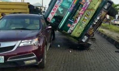 A 40-foot container has crushed a Sport Utility Vehicle (SUV) in the Ago Palace Road, Mile 2 area of Lagos. The Lagos State Traffic Management Authority...