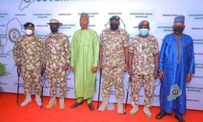 The newly appointed military service chiefs have undertaken their first trip to Borno State, which has been at the centre of the war against Boko Haram....