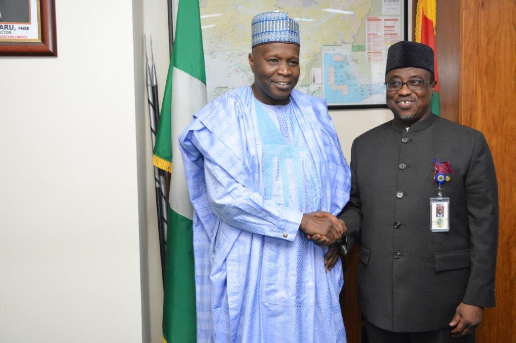 NNPC GMD welcoming the Governor of Gombe State to his office yesterday during a visit to explore possible areas of cooperation in the ongoing search for...