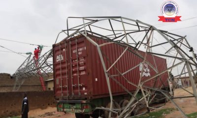 A trailer ladened with a container has rammed into the base of Transmission Company of Nigeria (TCN) tower T16 located in Gunduwawa Village, Gezawa Local Government...