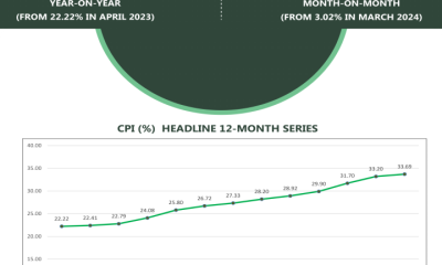 The nation’s inflationary trend has remained unabated as the month of April, 2024 recorded 33.69 percent while food inflation increased to 40.53 percent. Statistics from the...