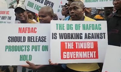 Members of the National Union of Food, Beverage and Tobacco Employees protesting at NAFDAC office in Lagos Members of the National Union of Food, Beverage and...