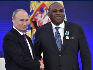 President Vladimir Putin of Russia (left) in handshake with Afreximbank President Prof Benedict Oramah after bestowing the Order of Friendship on him. President Vladimir Putin of Russia has...