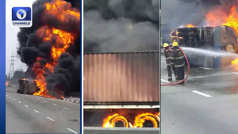 “The tanker was fully loaded, and in trying to avoid killing many people, the driver lost control, and the vehicle eventually fell over. It took about 45 minutes before the fire service arrived,” another eyewitness, Oladiran Olanrewaju, a truck driver, explained.