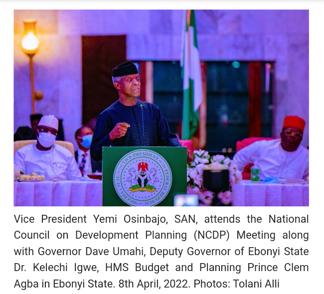 The VP spoke at the NCDP meeting during a 2-day official visit to Ebonyi State, where he also commissioned a number of projects executed by the state government.