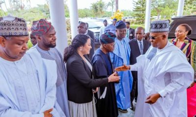 L-R: Director General, Presidential Enabling Business Environment Council (PEBEC), Princess Zahra Audu Mustapha, Ms. Mobolaji Ogundairo, Director, Woodhall Finance Company, Mr Viavo Hunponu-Wusu, Managing Partner, BlackStone, Legal Advisory, Mrs. Mojisola Hunponu-Wusu, President, Woodhall Capital, His Excellency, Senator Kashim Shettima, (GCON), Vice President of the Federal Republic of Nigeria, represented by Senator Ibrahim Hassan Hadejia, the Deputy Chief of Staff to the President, Office of the Vice President, Alhaji Abdul Koufarsauri, Board Member, Woodhall Capital, Prof. Dauda Yinusa, Executive Director, Policy, Strategy, and Research representing His Excellency Governor AbdulRahman Abdulrazaq, Chairman, Nigeria Governors’ Forum (NGF) & Governor, Kwara State,during the a pre-investor forum held at the Presidential Villa in Abuja